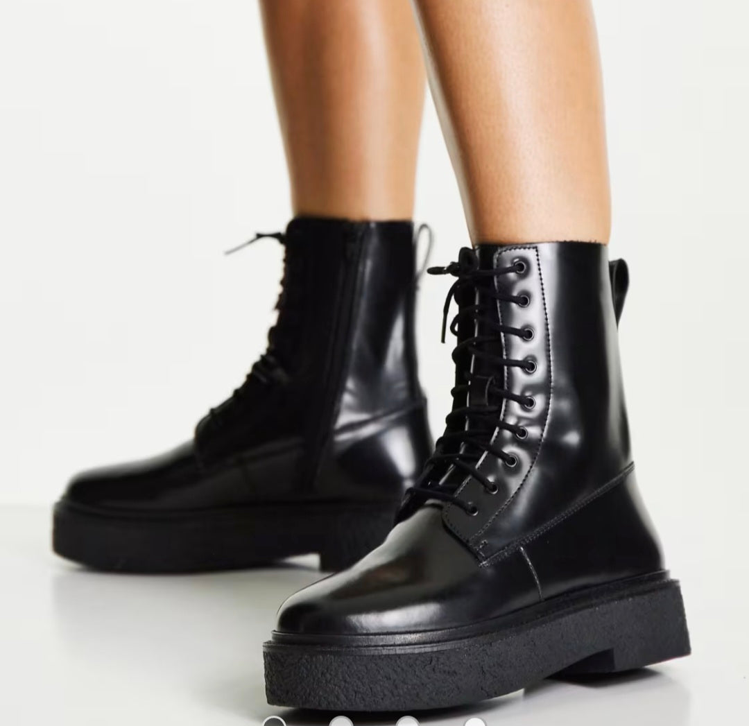 ASOS DESIGN Wide Fit Acolade flat lace up boots in black size UK 6
