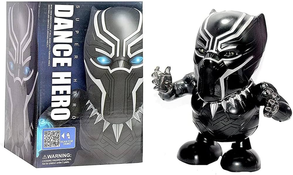 Dancing Black Panther Dance Hero Toys Dancing Robot with Light Music Dancing Action Figure w/ Openable Iron Man Mask , Lights & Music Interactive Toy for Boy Girls Kids Children Gift (Black Panther)