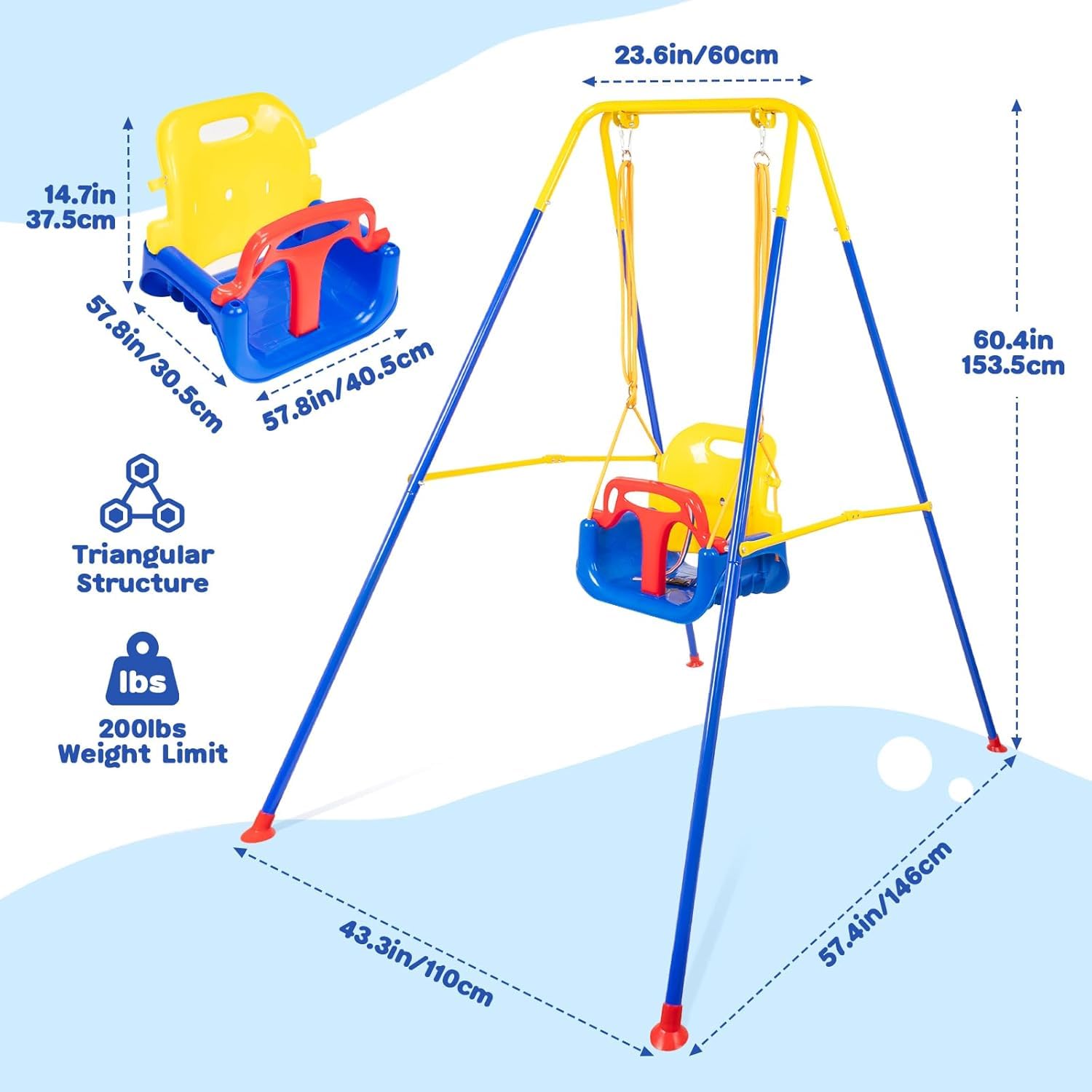 FUNLIO 3-in-1 Swing Set for Toddler with 4 Sandbags, Heavy-Duty Kid Swing Set with Safety Harness, for Backyard, Indoor/Outdoor Play, Folding Metal Stand & Clear Instruction, Easy to Assemble & Store