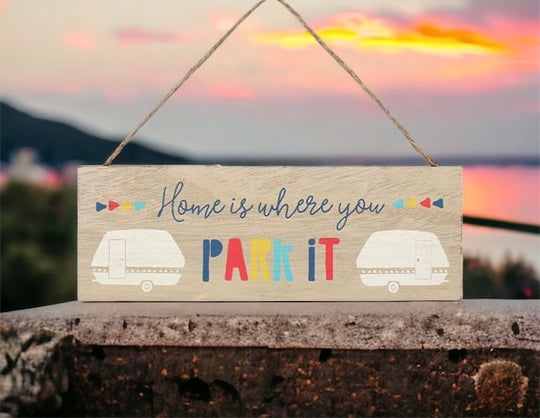 Hanging Natural MDF Plaque With Campervan Design And Home Is Where You Park It Text 8.5cm x 24cm x .5cm