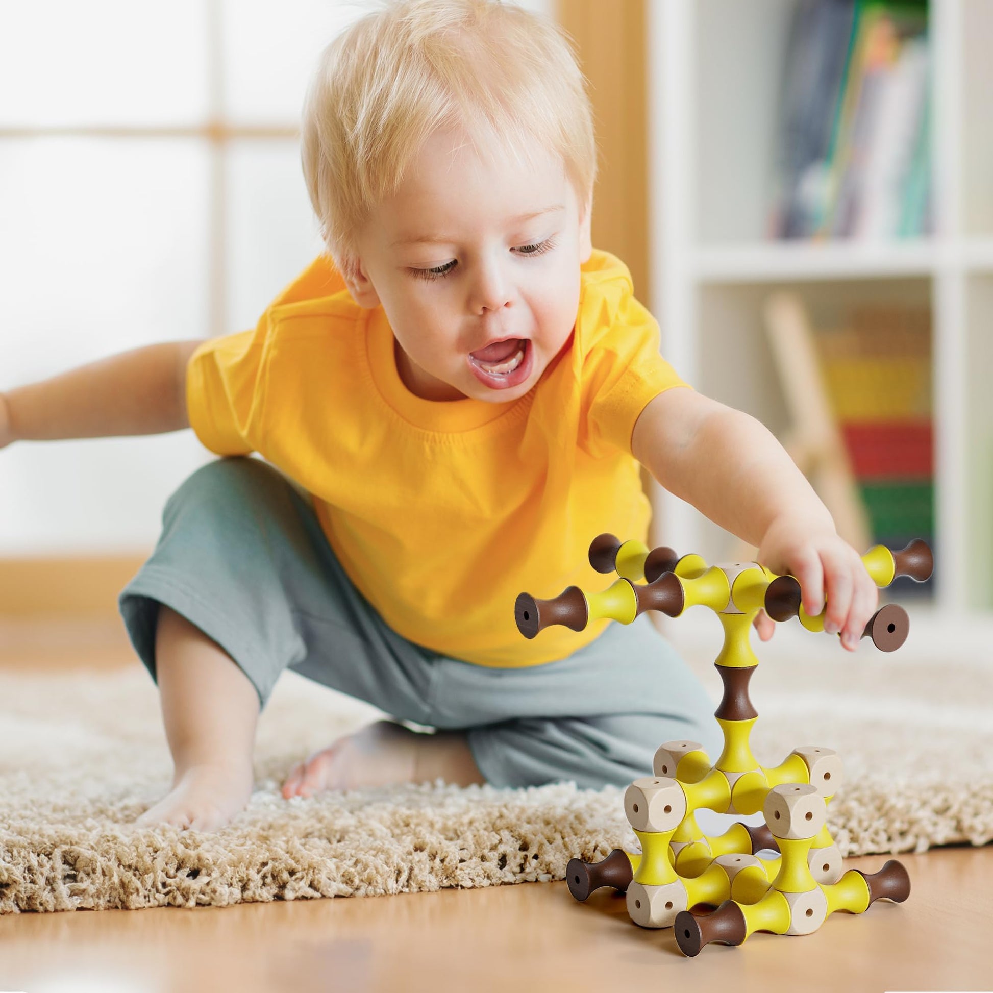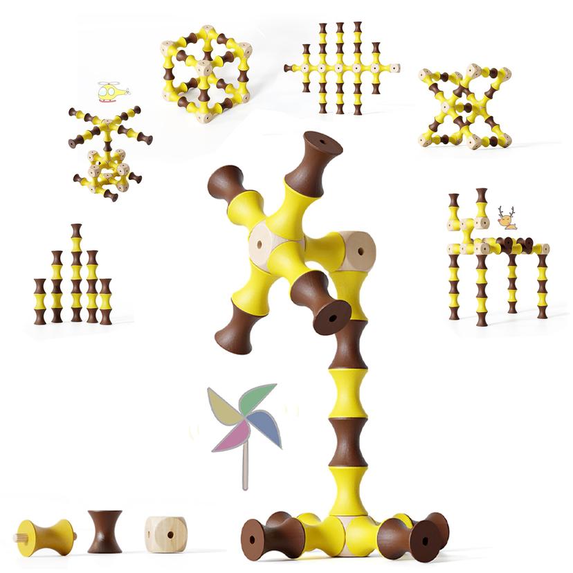 Toddler Wooden Building Blocks, 60pcs Educational Toy with Storage Bag