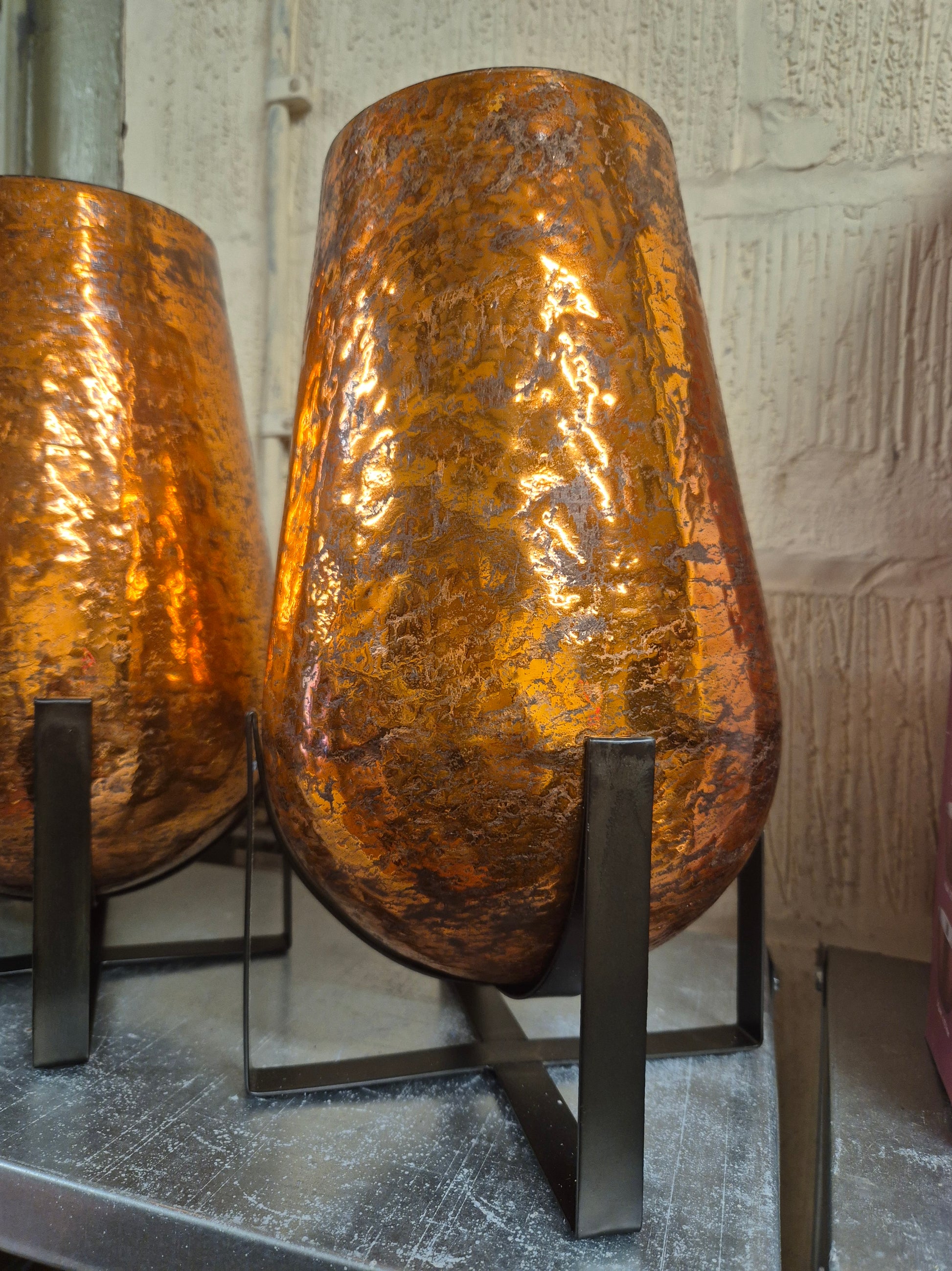 Vintage Copper & Glass Candle Holder & Snuffer Lamp / Vase